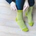 The design features a simple stranded colourwork pattern. The socks are knit toe-up, using a hybrid of the German short row heel and Heel Flap and Gusset techniques for an improved fit.
