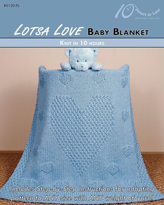 Showcase your skills and your love with this beautifully embossed baby blanket. Worked entirely in knit and purl, the one-piece construction features a large moss stitch heart surrounded by smaller purl hearts. Cute in any color, this charming piece is a wonderful way to show your heart. (Note: Center pattern is worked from a Stitch Chart instead of written instructions.)