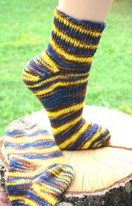 Mit Fersenwand, ohne dass Maschen aufgenommen werden müssen und auch ohne verkürzte Reihen. Nur über ein paar wenige Reihen muß hin und her gearbeitet werden.