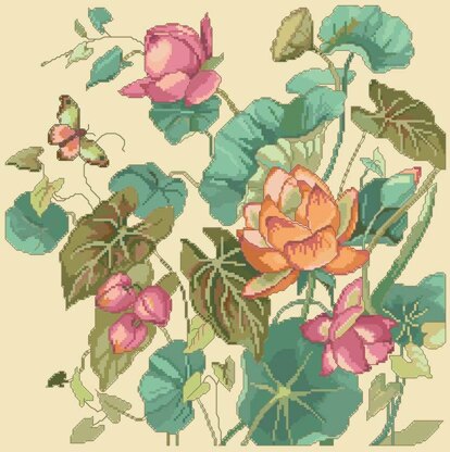Designed by: Nancy Rossi. Blooming with fresh and elegant design and Eastern-inspired details, this exquisite cross stitch piece instantly transforms your dГ©cor. This modern yet classic Asian influenced lotus flowers, buds and leaves are unusual for cross stitch and one of our favorites.