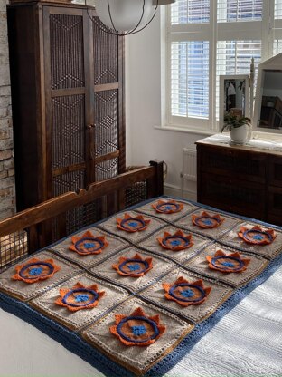 This Lotus Patchwork Afghan is worked in square motifs, which also makes this a great pattern for knitting on the go. Mix and match your loved colours, choose a different yarn to create a beautiful colour tone that goes with your decor! This Afghan is sure to be a great addition to your home. You can drape it over your couch or bed to compliment off the colours in the room. If you want yours bigger - just make more squares!