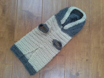 Give your favorite dog a warm hoodie when it's chilly and rainy outside! This dog hoodie is very easy and quick to crochet you'll want to make more than one. Designed using half double crochet throughout with the attached hoodie for that super cute look that is also very practical. Pattern is made using worsted weight yarn such as Patons Canadiana in two contrasting colors, using crochet hook J (6.00 mm). You can easily change the colors to your favorite ones. Great combinations include : Orange and Navy Blue, Teal and Brown, Mint Green and Light Gray, and many more.