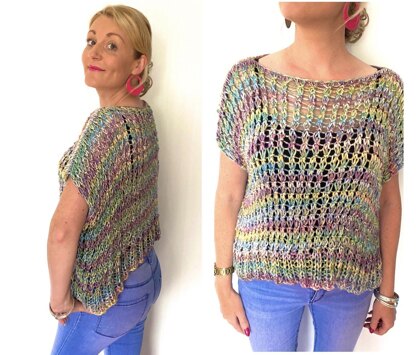 Made to be worn oversized. INSTRUCTIONS TO MAKE IT LONGER IN PATTERN.