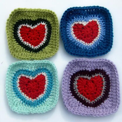 This pattern includes detailed instructions on how to make a heart motif or heart granny square. It includes a bonus photo tutorial on the invisible join method.