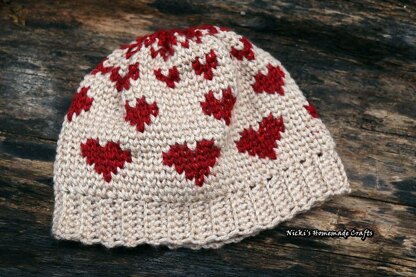 The "Love is in the Air” beanie has so many different uses! It can be used as a normal beanie, a messy bun/ponytail beanie, a hat with pom-pom or even as a neck warmer/scarf. How amazing is that? It fits for every situation. The hearts on top become smaller and smaller, until they are all so small they become a red cloud like flying hearts, spread love everywhere :-)