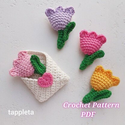 Love letter with Tulip crochet pattern - cute project for Valentine's Day. Crochet Pattern PDF.