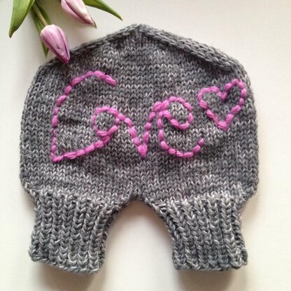 LOVEMITTENS for my sweet Valentine! Easy to knit mittens with 2 plies for couples! Could be a nice present with some embroidered message on top, too!