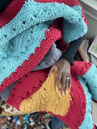 Who can’t use a little extra warm, comfy love? Well, that is just what this cute and quick chunky lapghan delivers. With 2 major stitches, it is great for crocheting while catching an episode or 5 of your favorite show. Feel free to customize by using one color or six colors. Make It as wide and/or as long as you like. Either way, get ready to get loved on!