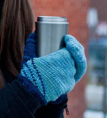Worked in from the cuff up, these mittens have a non-traditional construction for the thumb that provides a fit like a gusseted mitten but without increases or changes to the stitch count. The angled lines in the contract colour are made using stranded colourwork, and the contrast colour yarn continues to be stranded until the hand is complete, offering an invisible layer of warmth.