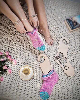#LoveMeCrazySocks pattern is designed for a little bit experienced knitters. It's quick to make, but requires some skills: lace, basic colourwork, provisional cast on and ofcourse magic loop or DPNS. Everything is explained step by step, and videos are included too, however I still don't recommend it as a first knit.