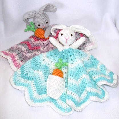 Designed to be safe for little ones, with large pieces, embroidered face, and Bunny/Blanket crocheted as one. The cute baby Carrot is large enough to be grasped by little hands and tucked back into the handy pocket. The hollow Arms can be used as a finger puppet, extending the fun for older ones!