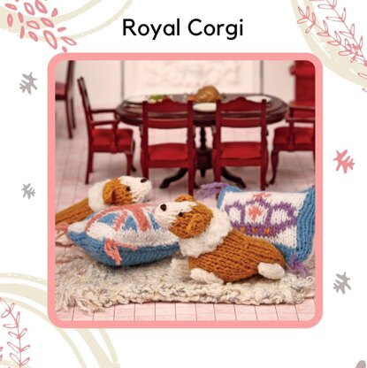 Materials • For Corgi; 4g mustard DK (8-ply), small amount of white DK, small amount of white fleecy chunky yarn, 4-ply dark brown • For cushions; small amounts of 4-ply coral pink, lilac, sky blue and white • For rug; small amount of cotton yarn in Aran weight • Stuffing