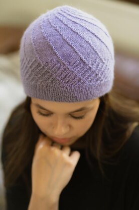 This cap is inspired by the Luberon Valley in France’s Provence region, an area that is famous for its lavender. Of course the lavender plant is well known for its signature scent, flowers, and color, but the Luberon Toque puts a little more focus on the specific part of the plant where the shrubby part ends and the stems for the flowers begin. The motif uses intersecting lines to create a sense of order out of natural disarray.