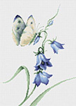 Kit contains chart and instructions, needle, 16 count white Aida fabric and presorted Anchor stranded cottons on loaded thread organisers.
