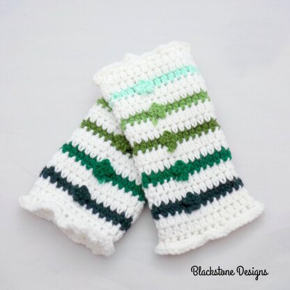 Who doesn’t love dressing up for St. Patty’s Day? Add a little pizzazz to your outfit with these fun Lucky Charm Leggies. Complete with ruffled edges, these legwarmers are so much fun!