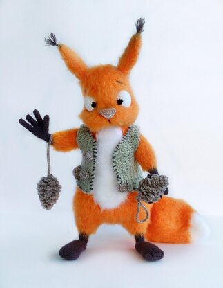 Let me tell you some words about our new hero. The squirrel is crocheted only with a hook. I used the unusual yarn Lotus Grass Stretch (Camtex), which creates the effect of natural wool after brushing. You can use a double thread of mohair instead of Camtex. The toy is made by using the wireframe, and it can move the parts of the body, bend fingers, arms, legs, and tail. It can stand by itself and hold light objects. It has a cheerful and tricky nature, so beware because it can shoot a pinecone at you! I am sure that it will look alive once you finish crocheting it .