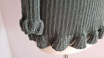 Lucrezia ist ein klassischer leichter Sommerpulli mit dreiviertel Ärmeln. Am Saum und an den Ärmel ist ein apartes Ajourmuster, das einen Glockenrand erzeugt.
