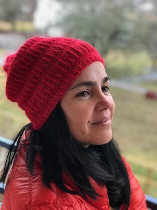 Knitted in the round from the bottom up using two strands of yarn held together you will get a warm, slightly textured soft and stylish hat.