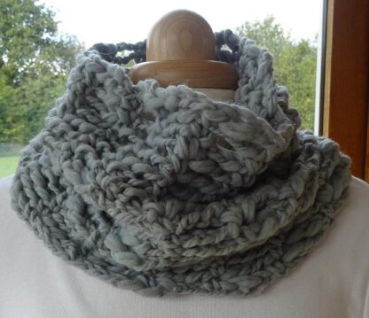 I bought some Rosarios 4 Bijou yarn whilst on holiday in Northern Portugal. - from Ovelha Negra. It is super bulky with a varied thickness and absolutely lovely to use. So I wasted no time in making something with it which reminded me of Portugal. Probably the best evening we had was the first night, it was pouring down with rain but we had the most spectacular view of the Luis I Bridge over the River Douro. It is known as the Eiffel Tower of Portugal, and is constructed from lots of grey steel. The Bijou yarn I bought is a pale grey and as I looked at the photo of the bridge my mind started to think – simple steel structure, simple crochet stitches. This cowl is the result, The stitch is simple, so simple it took only a few hours to make. It is also adaptable, I made it using Bijou but you can make it in any yarn as long as you use the correct hook size and start with a chain which is a multiple of 4.