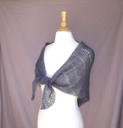 Lunar is a simple shawl wrap with rows of eyelets, knit in a fluffy mohair yarn with a bit of sparkle - double win!