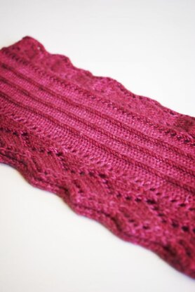 Sample Details The pink sample is the long length and is worked in Madelinetosh Pashmina in Vermillion. The blue sample is the medium length and is worked in the Plucky Knitter Primo Sport in Papier.