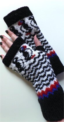 The mittens are knitted from the cuff and are available in three sizes. Optional thumbs can be included. The pattern is only worked in two shades at any one time. Colour details on the beak and feet are added to one Puffin motif on the back of each hand using duplicate stitch once the knitting is complete.