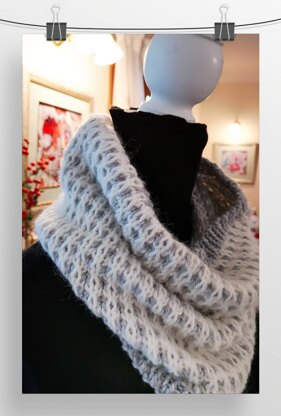 The light and soft wool blended yarn adds the luxurious coziness to this stunning cowl, you can simply snuggle down to keep you warm for a hiking or ski trip.