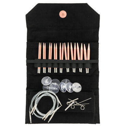 Lykke Cypra 3.5" Interchangeable Circular Needle Set is made of smooth, lightweight copper. Cypra needles will take on a beautiful and natural patina over time and will not stain your knitting projects. You can also polish your needles to retain their bright copper finish without impacting your stitches.