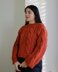 This sweater has a relaxed fit and uses basic cable patterns and seed stitches. You’ll knit two panels flat and bottom-up: one back panel and one front panel, with some neck shaping. Then you’ll knit the sleeves and the neck ribbing in the round.