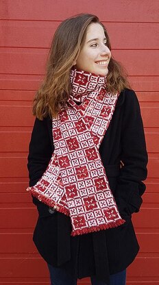 This reversible scarf is double-thick, over six and a half feet long, and will definitely keep you toasty in freezing temperatures! Moreover, it's knitted completely in the round and the only sewing required is a single 7"-long seam at the end. You can also easily customize the length by working either more or fewer chart repeats.