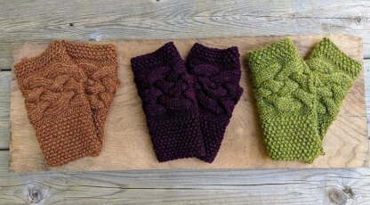 These fingerless mittens are knit flat and seamed at the top and bottom leaving a thumb opening in between. Great for a knitter who doesn't use double pointed needles. This is a small project that will help a beginning knitter become familiar with cables, seed stitch and seaming. Most any worsted weight yarn will work and these mittens will fit most average sized hands.