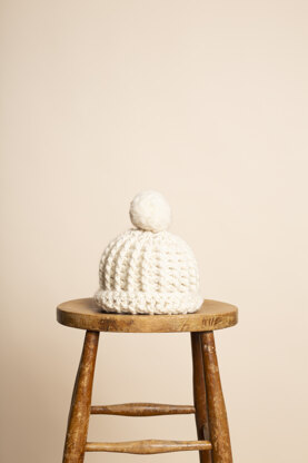An easy crochet kit, this beanie is quick to make and perfect for beginners. This versatile beanie can finish off any outfit, with a mock rib technqiue and pom pom on top.