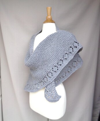 This thick, cozy shawl begins with a squishy garter stitch body with a pretty diamond lace border.