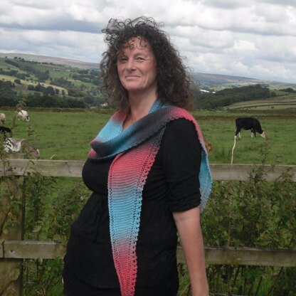 This delightful scarf can be wound round your neck many times, or worn loose and free. It really shows off the colours of the yarn I suggest for this knit and the drape is perfect. Although of course you can substitute your own DK weight yarn.