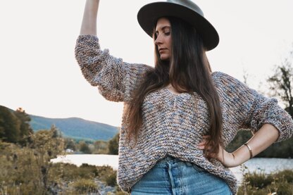 Knit loosely with a relaxed fit, this deep v-neck pullover is the perfect light layer for summer evenings as the sun starts to set and the breeze rolls in. Short rows added to the back make it longer than the front and a squishy garter fabric adds bounce and texture.