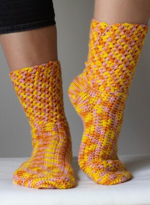 Magic Socks are fun to make! Magic Socks are crocheted toe-up, with two different crochet stitches to highlight any color yarn