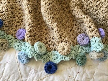 Colorful circle motifs dance along the edge of the Magical Land Baby Blanket. Fits any decor in any room. Warm and comfy. Simple crochet stitches throughout.