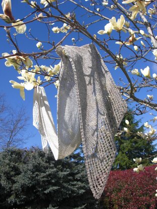 This light and breezy bias scarf with eyelet edges and optional beading is perfect for plain or gradient fingering weight yarn.
