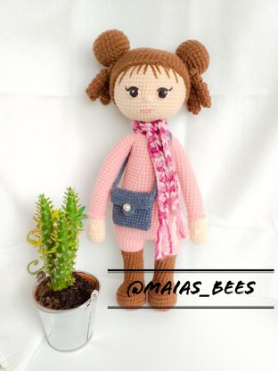 This pattern is for a one piece doll, crocheted from the feet up, with no sewing involved, except for the hair cap and hair buns.