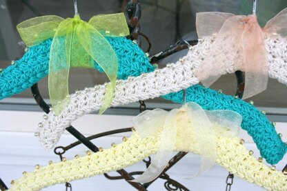 These covered hangers are not only functional, but the addition of beads and an organdy bow make them oh-so-pretty.