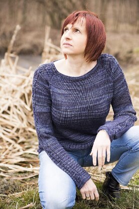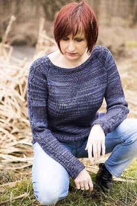 “Maisie” is a seamless top down raglan with short row neckline shaping and a sideways knit lace panel at the hem featuring integrated pockets. Whether the lace motif shows shoals of fish, tightly packed flower buds or even space capsules stuck in traffic is completely up to your imagination! A quick knit from sportweight yarn with almost no finishing required, this sweater works up fast and is just the right project for those who love the feeling of accomplishment that knitting smart lace patterns offers, but still prefer casual elegance for their wardrobe.