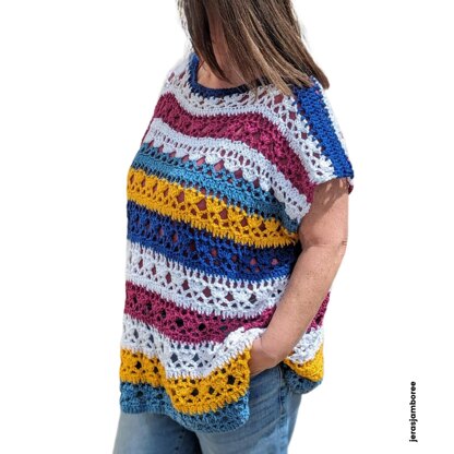 Crocheted in a lacy stitch with breathable cotton yarn in five colours, the Maisie poncho top is the perfect stash busting project. Flexible finishing options means you can customize your poncho to suit your style: leave the seams open for a flowing, open-sided look, sew the side seams from underarm to hem for a more structured fit, or you can opt for a trendy split hem. Whichever option you choose, your poncho is sure to become a favourite summer staple.