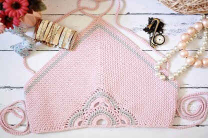 The peek-a- boo detail at the center gives a girly flair and a contrast of another colored yarn gives more of a detail to the structure of the piece.