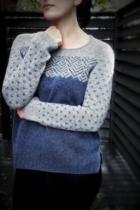 Maligar is a contemporary take on traditional stranded colourwork garments. The Yoke section is full of excitement with two different colour patterns happening simultaneously! A simple and easy to memorise one on the sleeves and a more complex one on the body. Perfect opportunity for some focused, concentrated knitting that gives your mind a chance to stay quiet and centered for a while.