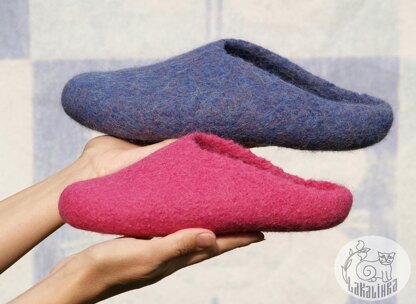 Design details: ● felt slippers with open heel ● seamless, worked in one piece ● worked from the heel edging flat ● the slippers toe is worked in the round ● Kitchener st for grafting the last sts on the toe