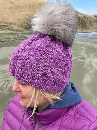 A simple beanie that uses cable stitch pattern and purl stitches for a nice texture between cable columns. This is a pattern that any level of knitter would enjoy, and the results are a pleasing, unisex and essential hat for winter.