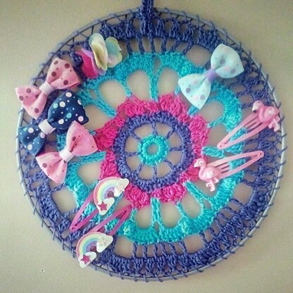This crochet wall hanging is made in 100% cotton and then attached to a 20cm hoop so it can be hang on the wall.