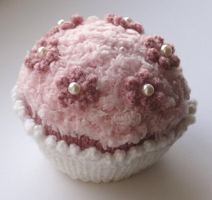 This little cupcake is fun and practical to make as only minimal seaming is required. The main cupcake is knitted in one piece from the bottom upwards, with just one seam to sew. Three double pins are used from rows 7-12, to ease the tension from multiple increases (not knitted in the round).