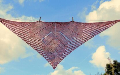 The pattern is charted and includes full written instructions as well as a schematic to show the structure of the shawl for the different stitch patterns used. The final lace section can be ended at different points to give some flexibility on your yardage.