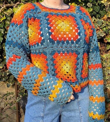 The squares are joined as you go, so there no sewing up afterwards. The sleeves are worked in the round from the shoulders down towards the cuffs.